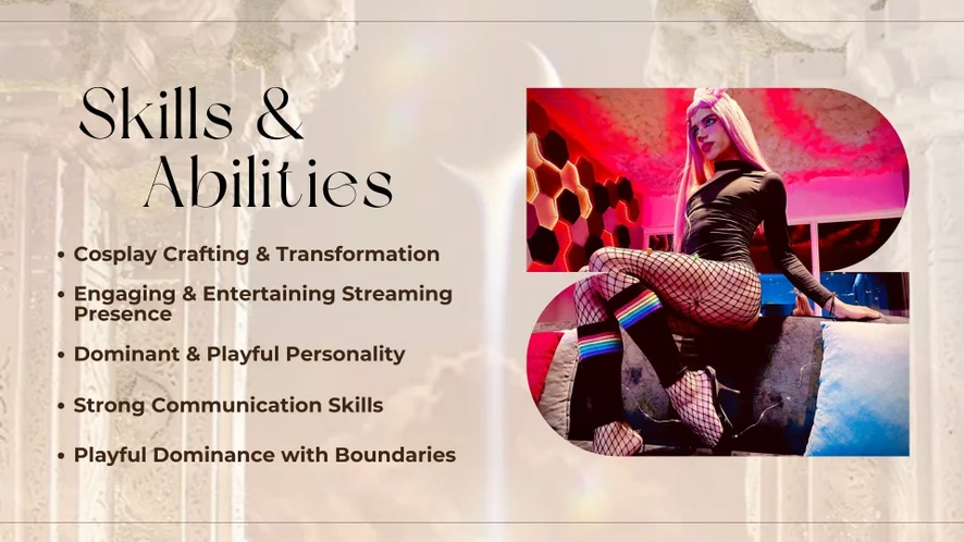 Doggy Style, Spanking, Striptease, Foot Fetish, Flashing, Twerk, Erotic Dance, Fingering, Dirty Talk, Facesitting, Smoking, Humiliation, Role Play, Masturbation, Handjob, Heels, CEI, SPH, Oil Show